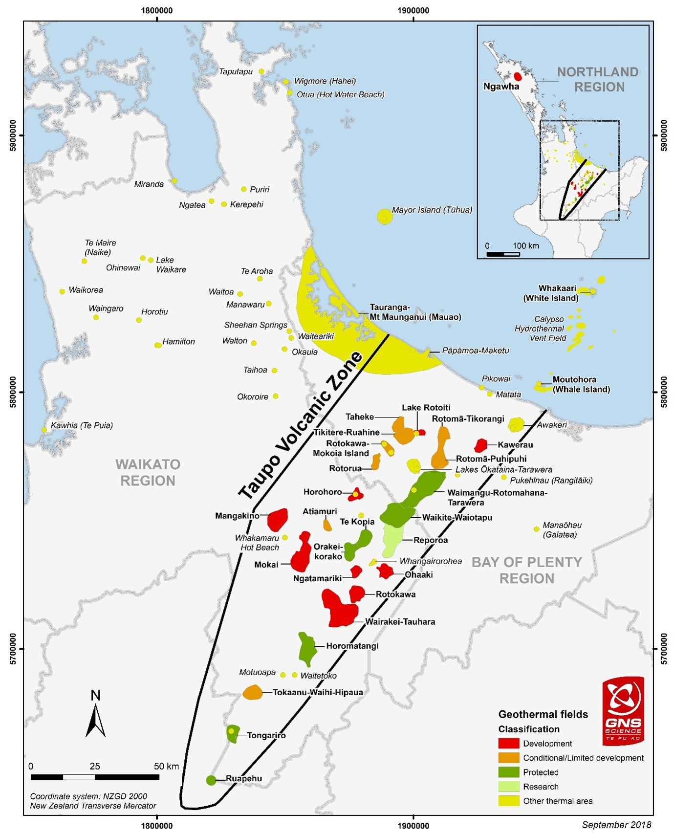 Credit to GNS and New Zealand Geothermal Association for map of the Taupō Volcanic Zone